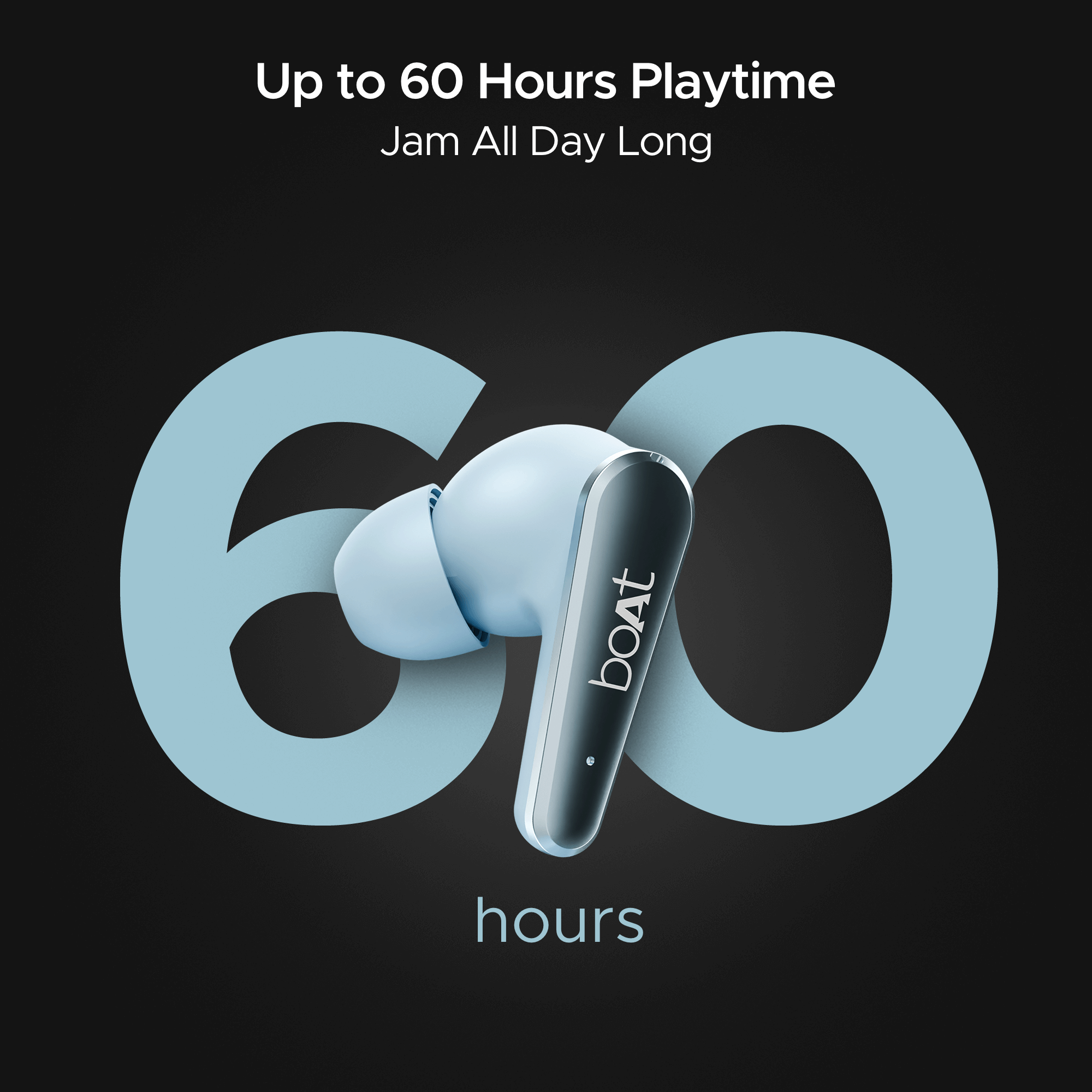 - 60 hours of Playtime: Traveling by plane, car, or public transportation? Catch up on your watchlist while you're at it. Airdopes 280 ANC’s playtime of 60 hours eliminates frequent charging hassles during tedious commutes.