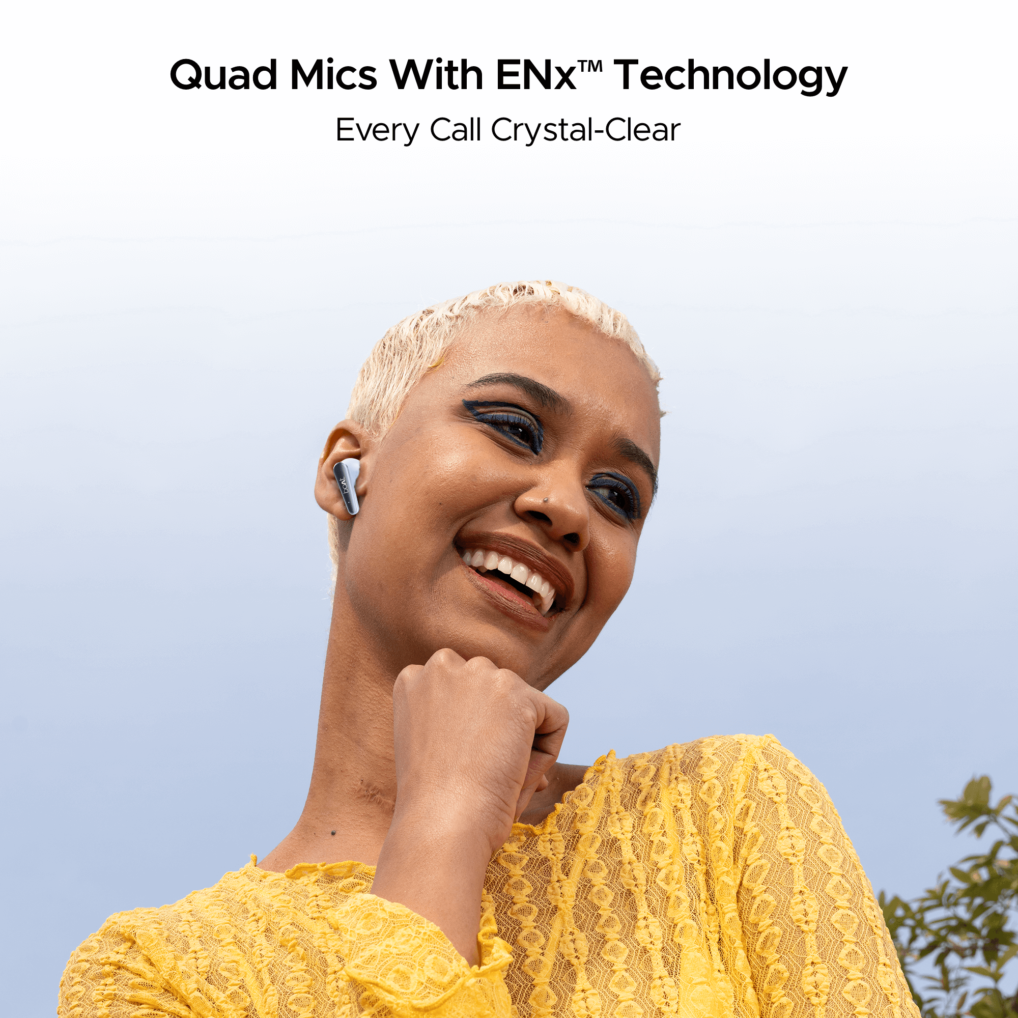 - Quad Mics with ENx Tech: Not only do these earbuds feature ANC, but they also have four microphones with superior ENx technology. So, no matter where you are, you'll be able to hear and speak on your calls clearly.