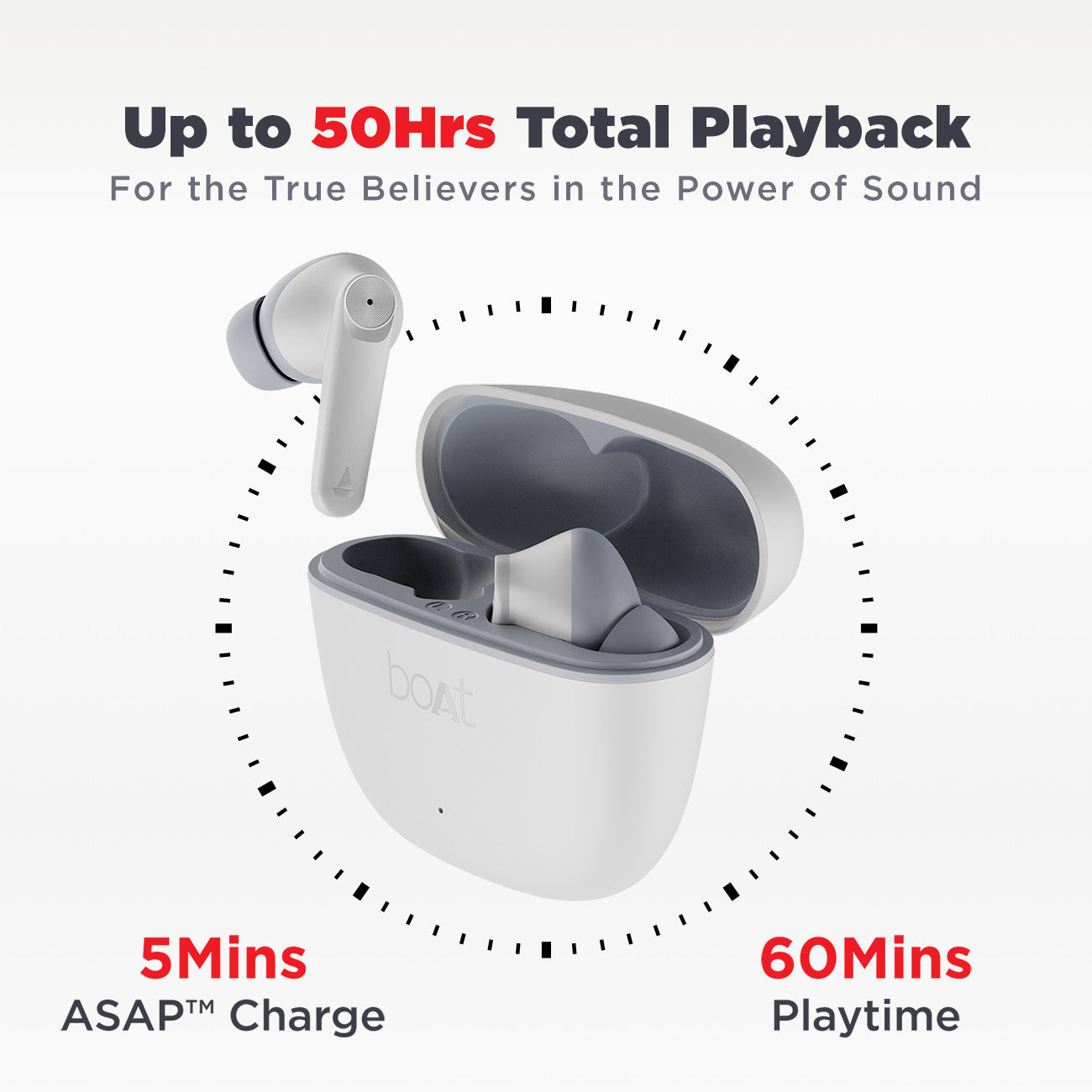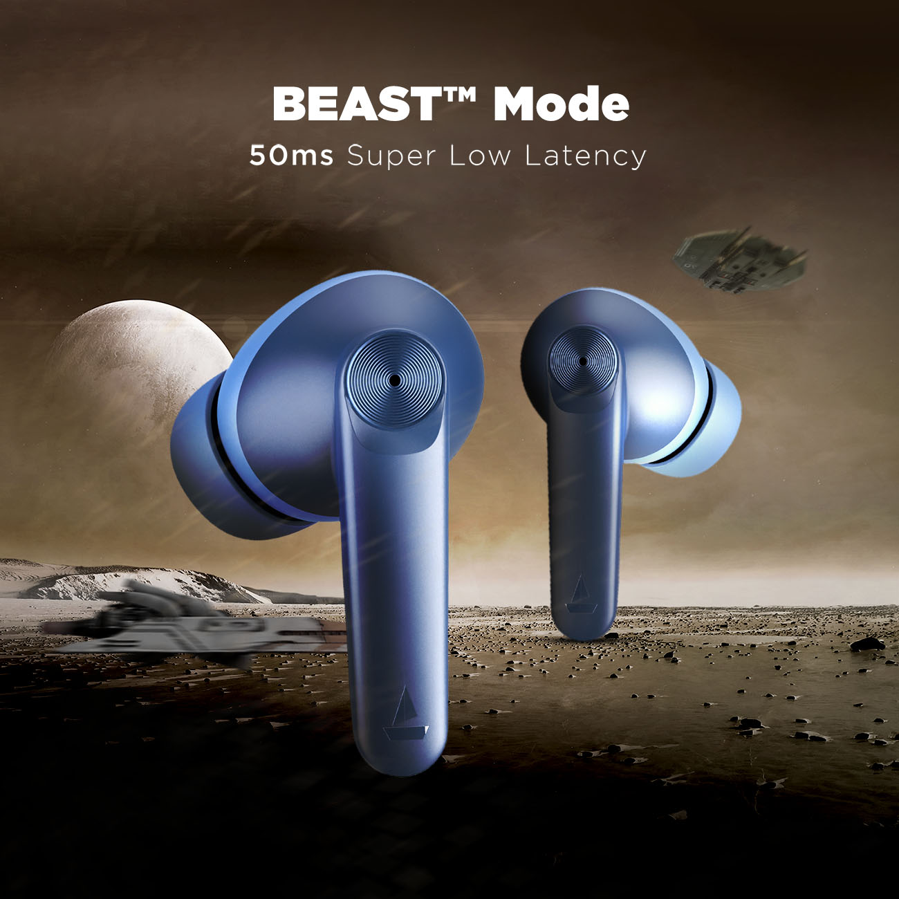 - True Wireless Earbuds with up to 50 Hours Playtime, Quad Mics with ENx™ Technology, 13mm Drivers, BEAST™ Mode, ASAP™ Charge