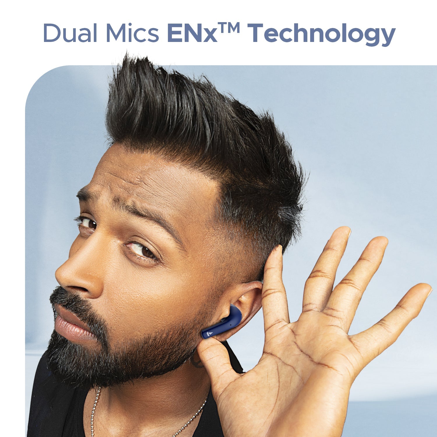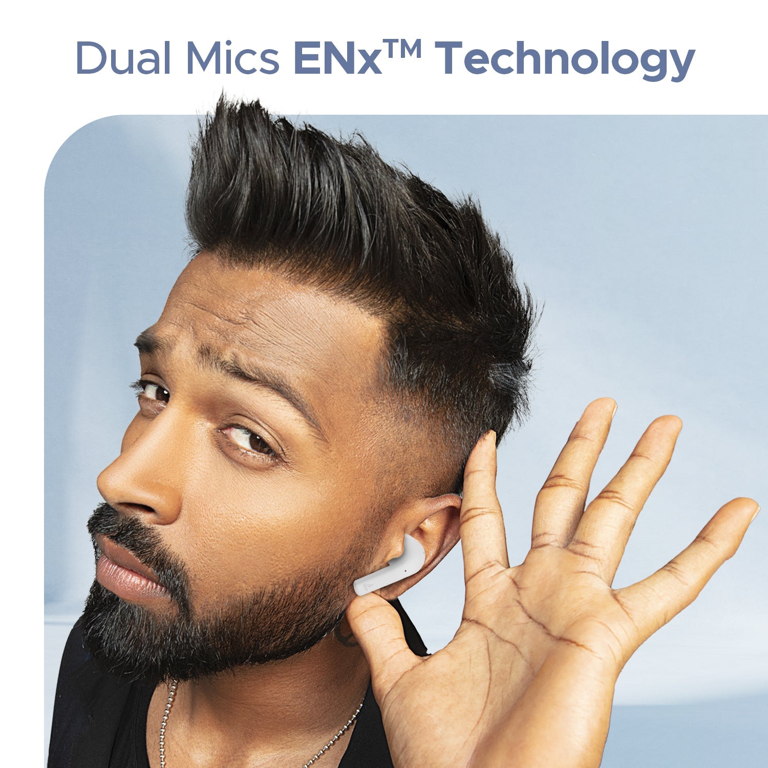 • Highlights With Mic:Yes 100 Hours Playback Dual Mics with ENxTM Tech Low Latency Gaming Pocketable ID IPX4 Splash Resistance Insta Wake N'Pair   Specifications General Model Name Airdopes Hype
