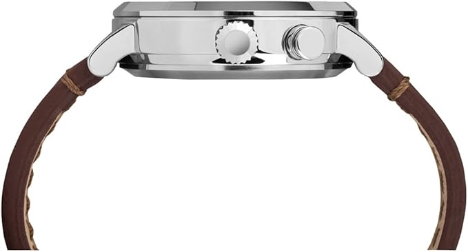 - Adjustable brown 20mm genuine leather strap with quick-release spring bars fits up to 8-inch wrist circumference