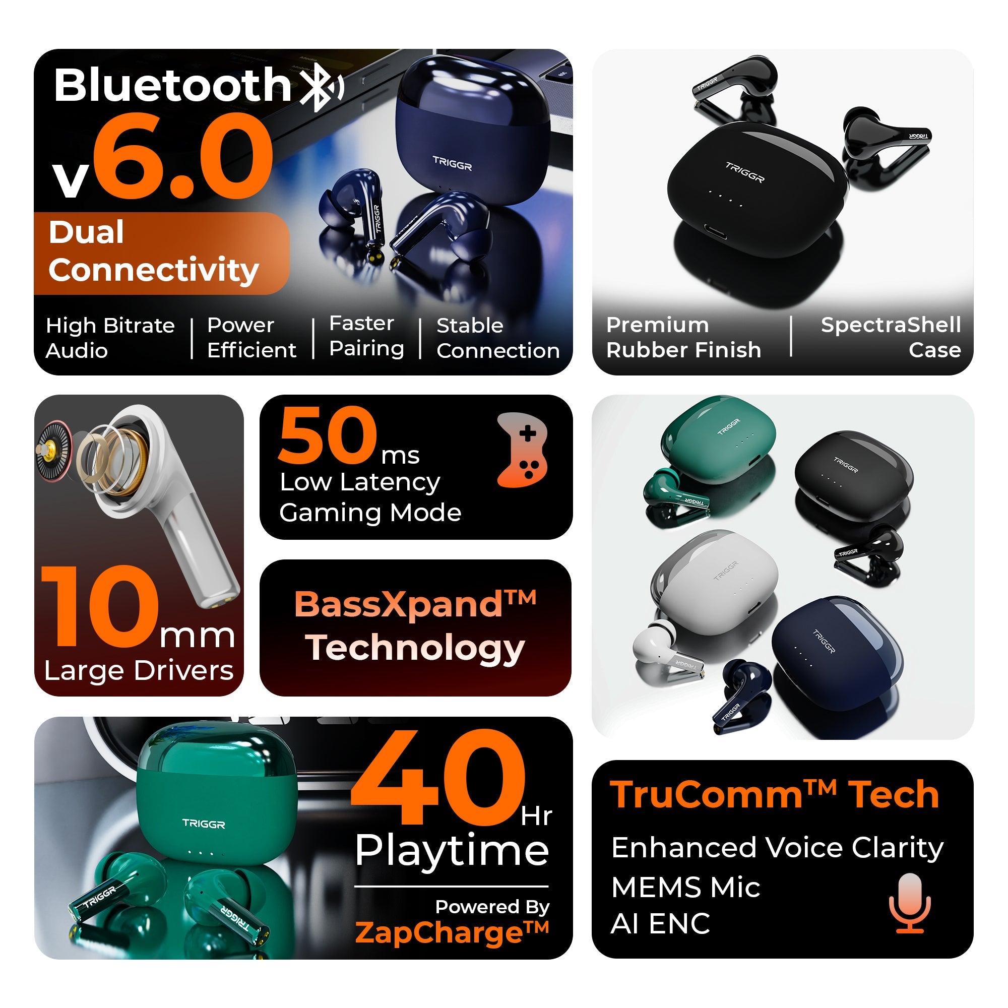 - Latest Bluetooth v6.0 | Dual‑Pairing | SpectraShell Case | 40 hrs Playtime