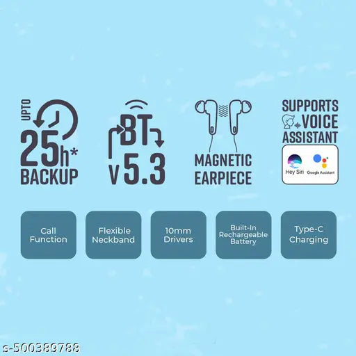 Experience immersive sound with the Zeb-Escape 20 Wireless Neckband Earphone in elegant White. Designed for seamless connectivity, these earphones boast Bluetooth v5.3 for a stable connection up to 10 meters. Enjoy an extended listening experience with over 20 hours of play time on a single charge, which takes just 1 hour via Type-C. The comfortable neckband design, magnetic earpieces, and built-in microphone make them perfect for calls and all-day wear. Compatible with all smartphones, these earphones offer intuitive volume and media controls, plus voice assistant support. Enjoy premium audio quality and convenience with the Zebronics Zeb-Escape 20.