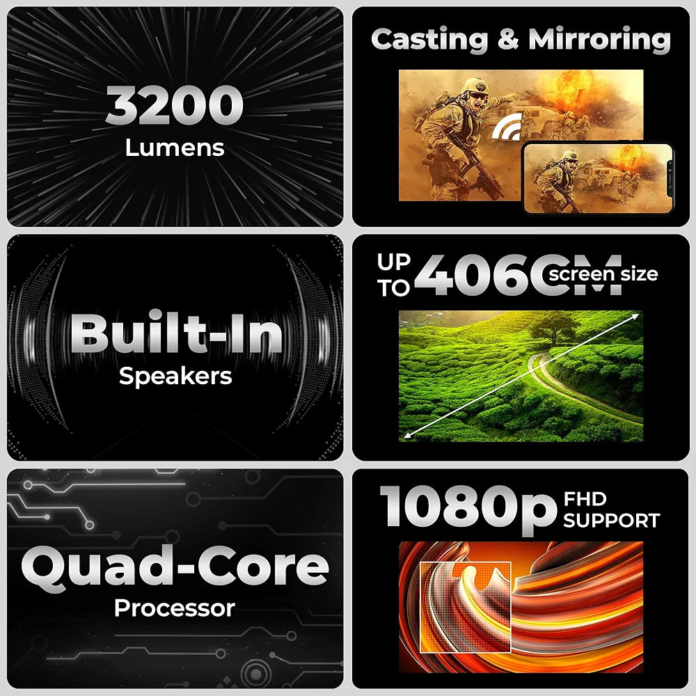 - Advanced Features: This smart projector boasts electronic focus for easy adjustments, a convenient remote control, and a powerful built-in speaker for an all-in-one entertainment solution. The 30,000-hour lifelong LED lamp ensures long-lasting performance.