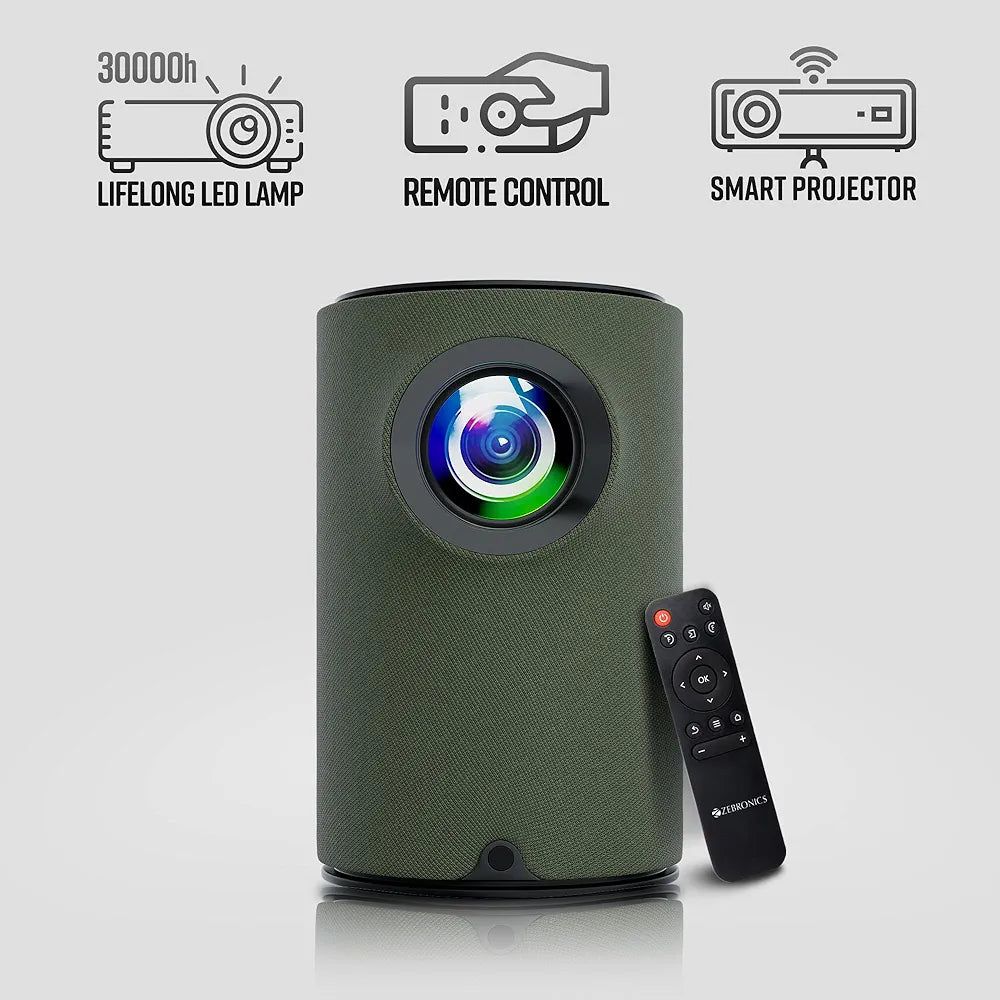 - ZEBRONICS PIXAPLAY 22 Smart Projector: Experience stunning visuals with 3400 Lumens brightness and support for 4K resolution. This projector delivers an immersive viewing experience on a large screen size of up to 160 inches. Enjoy seamless connectivity with built-in WiFi, Bluetooth v5.1, multiple HDMI and USB ports, and an AUX OUT option.